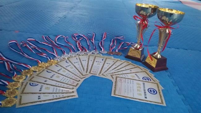 由常州市跆拳道运动协会、武进区跆拳道运动协会共同举办的“常州市大众跆拳道锦标赛”于5月1日在常州工学院体育馆落下帷幕。来自全市24个参赛单位及学校的跆拳道代表队共587名男女运动员参加了本次比赛,庙桥小学7名学员组成的“飞扬”少年儿童跆拳道代表队参加比赛。运动员们个个精神抖擞,顽强拼搏,经过多场紧张激烈的比赛,共摘取4金5银2铜,获得团体第三名的优异成绩。