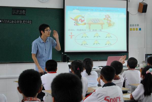 三年级数学教师孙星执教《认识分数》,多次磨课让孙老师在探索和研究中快速成长。他呈现的整堂课扎实、流畅,充满趣味。每个教学设计巧妙,环节清楚,过渡自然,教师的追问、反问都紧扣中心进行。对于未满两年的新教师来说,孙老师的进步表现让人欣喜。