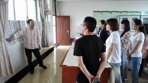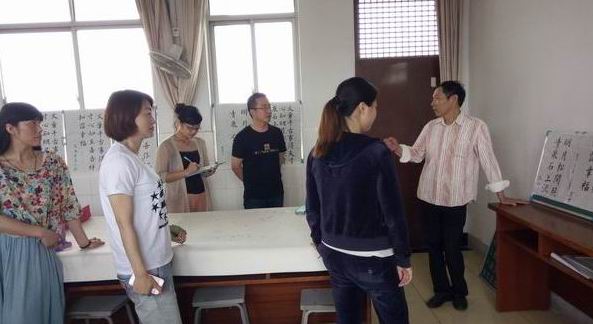 看着书法教室四壁悬挂的作品,李老师微微点头,并对一幅幅作品进行了细致的点评,对老师们的书写姿势、书写习惯、运笔用笔、基本笔画等方面都做了更有针对性的指导,还特别强调了练书法的门道——贵在坚持。李老师风趣幽默,点评间穿插着富有哲理的小故事,让老师们对中国文化、中国书法的历史发展、书法的理论以及书法的技法有了更多的了解。他认为,中小学书法教育不是要培养千千万万的书法家,而是要提高中小学生的基本文化修养,使他们爱国、爱传统、爱文化、爱汉字。李老师字字珠玑,言之凿凿,让老师们受益匪浅。