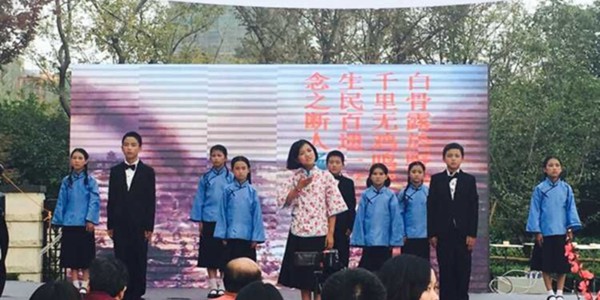 以往以抗战为题材的朗诵表演,内容主要渲染国人的艰辛与努力和人民解放军的英勇顽强。在此基础上,庙小的教师团队钻研创新,将日本与中国的历史渊源缓缓道来。上至秦始皇定天下、徐福访仙岛,下到日寇犯边疆、我党挽狂澜,孩子们以“华夏对日本之恩”和“日本报中华以战”的残酷对比警醒所有人:在痛恨侵略行为的同时,更要以史为鉴,警惕日本军国主义复苏和世界上一切破坏和平的力量的蠢蠢欲动。老师们力求在训练孩子的朗诵表演水平的同时,更要丰富他们的历史知识储备,拓宽他们的眼界。庙小团队抓住抗战胜利70周年的历史时刻,紧扣爱国与富强的时代主题,又不落窠臼地地以历史故事为线索,受到了评委老师的高度肯定,成为全场的一大亮点。