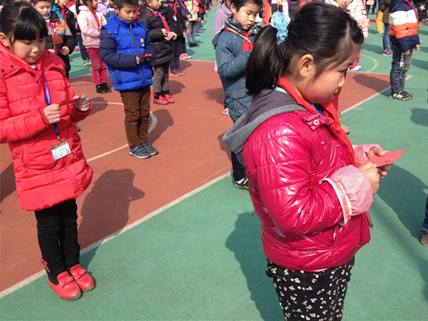 学生中心、少先队还为大家准备了一份礼物——让学生自励的红色灯笼。送灯笼旨在激励队员们以积极向上的状态迎接每一天,能够更佳地表现自己,发展自己!在主持人沃雨韩的指引下,大家小心翼翼地从袋中取出红灯笼,说出了自己的新学期期望,祝愿自己在新的一年表现更加出色!