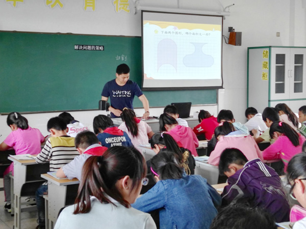 这次活动的形式是同课异构。由湖塘中心小学的王家栋老师和礼嘉中心小学的徐非老师执教五年级下册《解决问题的策略》一课。徐老师充分利用教材上的内容,设计了有效的探索活动,首先在出示问题并引导学生理解题意后放手让自主思考解决问题,其次在学生已有想法的基础上适时点拨学习转化的策略,最后引导学生对解决问题过程进行回顾反思,使学生感受转化的策略意义,体会应用这一策略解决问题的基本过程和特点。王老师的课与众不同,尝试了对教材的二度开发,适当将教材进行了重组和整合。王老师认为方法可以教,可以学,策略却不能从外部输入,需要在方法的基础上进行策略教学,所以王老师在关注数学前经验的基础上,一开始就设计了“怎么只根据一个条件来求三角形面积”的问题,在解决的过程中逐步将方法提升到了策略。之后的整个探索过程王老师提供了充足的探索空间,引导学生逐步积累针对具体问题的转化经验,设计了典型且富有变化的实际问题,让学生逐步加深对转化的认识,提高了学生用转化策略解决问题的能力。