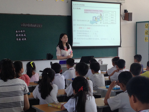 本次活动由庙桥小学的蔡静红老师执教《运算律和简便运算》的复习课,整堂课蔡老师精心设计了五个教学板块:情境导入,引出“简便”; 回顾交流,整理“简便”;练习实践,应用“简便”;回顾总结,升华“简便”; 拓展延伸,深化“简便”。 整堂课以学生自主探究、合作交流贯穿始终,让学生主动积极地学习,体会到整理知识的好处,感受到简算的优越性,既达到了整理复习的目的,又提高了学生合理、灵活地运用简便算法的能力。马杭中心小学芮含蕊老师执教了《认数和有余数的除法》的复习课,芮老师教态自然,面带笑容,很有亲和力。芮老师从数位顺序、数的组成、写数读数、数的大小比较、数的估计、余数要比除数小这些知识点带领着学生结合复习题进行复习教学,上课有条理,思路清晰,重点突出,并且芮老师很注重学生学习的结果反馈与评价。