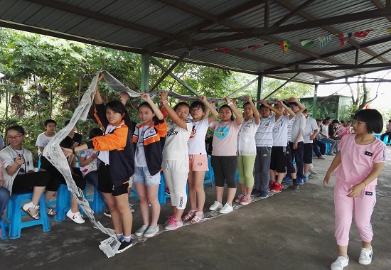 接下来在各组教练的带领下,孩子们进行了:希望大厦、车轮滚滚、支援前线、野餐、动感颠鼓、空中建桥、齐心协力、呼吸力量等活动。在活动中,充分体现了团队协作的能力,增进了生生之间的感情。孩子们在这些活动中锻炼了智慧,懂得了团队协作的重要性。