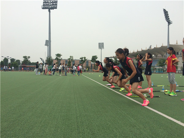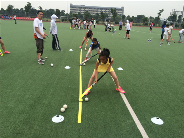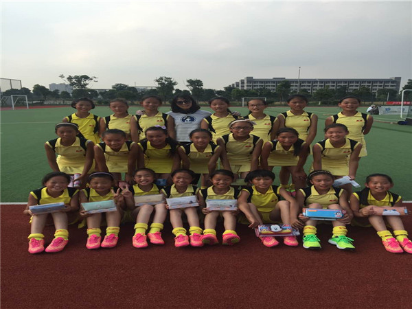我校的女子曲棍球队虽然才成立短短的两年,但是在两年的成长中,一路走来感受到的是满满的爱和温暖!每次要增添赛服、球棍、球、护具,街道办和校行政总是在第一时间保障到位;当球队训练缺乏专业教练时,区体育局给我们送来了技战术全面的专业教练员周炀老师。球队成立两年,第一年在专业教练没有到位时,我们参加首届区曲棍球测试赛获得第四名,参加首届市曲棍球比赛获得第四名;经过周炀老师一年的专业训练,今年我校曲棍球队参加武进区第二届曲棍球测试赛获得第二名,在第二届市曲棍球比赛中乙组获得团体总分第一名,甲组团体总分第三名的好成绩。目前她们正拼搏在2016全国青少年曲棍球锦标赛U12学校组比赛的赛场上,我们相信这支年轻的、活力四射的球队将会再创佳绩!加油!姑娘们!
