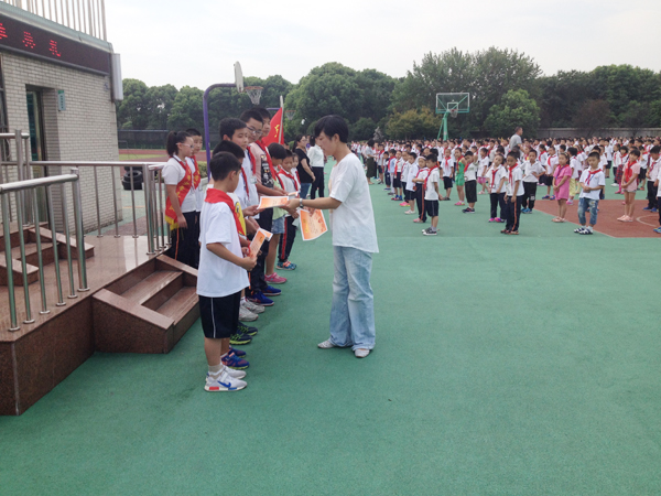 活动的最后,校领导表彰了在暑假期间在学习、活动、比赛、美德等方面有突出进步的同学,并为他们颁发了奖状,鼓励在场的每一个孩子在新的学期向榜样学习,不可虚度年华,而要每天进步一点点。