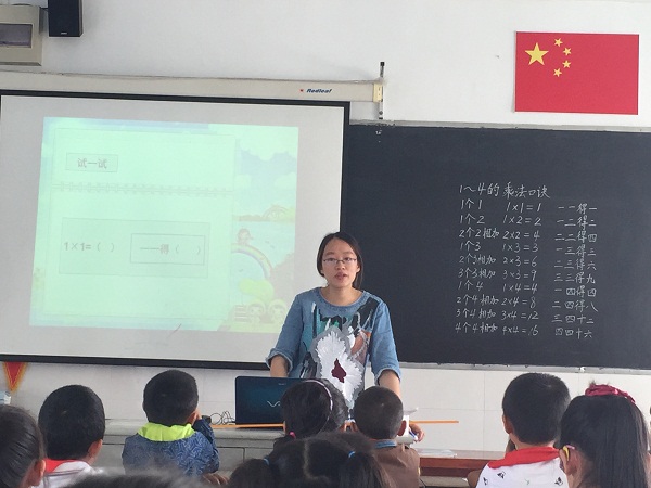 当黎明的曙光从窗***进,老师们就开始了一天的忙碌。9月19日上午第一节课,二年级数学组的翟雪皎老师就为我们展示了一节提升信息技术能力的研讨课——《1~4的乘法口诀》。