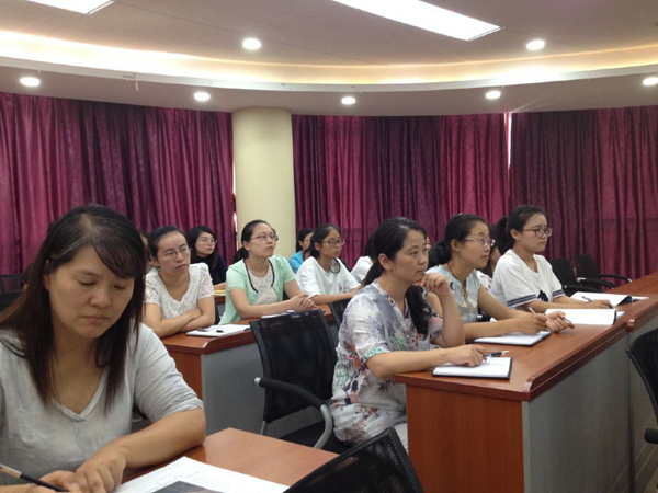 活动的首个议程是由花园小学庄彩华副校长在会议室向我们解读了学校的办学理念、办学愿景、培养目标,她重点介绍了学校坚持开展常规教育的一些实实在在的举措。