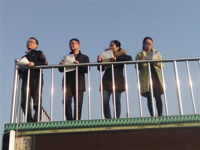 此次比赛担任评委的不再是体育老师,为了对比赛结果负责,我们请来四位行政领导担任我们的评委,他们是课程中心的刘东主任,课程中心的曹丹主任,服务中心的赵晓英主任,教师发展中心张敏主任,他们四位老师每人负责一到两个项目,两操的评分由7大项组成,我们要求打分时必须在同一年级的平行班采用同样的打分尺度,最大限度的保证比赛结果的公正性。