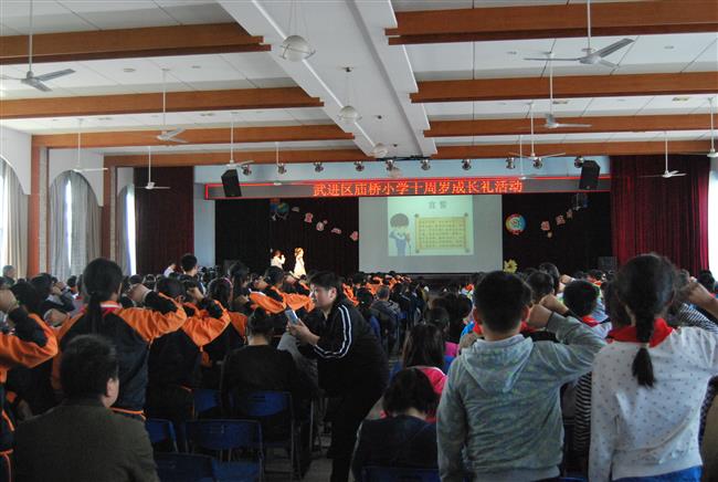 十岁——漫漫人生中一个新的里程碑,它意味着孩子们即将告别幼稚的童年,开始迈入憧憬无边的少年时代。为了响应教育厅“八礼四仪”的号召,让孩子们学会感恩、学会分享,学会担当,记住这个有纪念意义的生日,2017年4月28日下午,庙桥小学全体四年级学生集中在学校大礼堂,举行了一场别开生面的“感恩父母·感恩生命”—— “十周岁成长礼” 成长仪式。四年级老师和家长一起观礼,见证了这一幸福而又难忘的时刻,沈凡舒、叶晨同同学主持了这次活动。