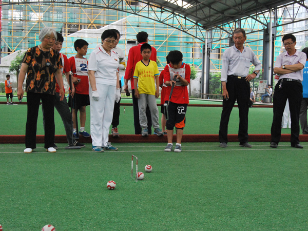 上午9点30分,组委会举行了庄重的开幕式。参加开幕式的领导分别有区基教科副科长谭文杰,区体育局竞技科科长何伟明,区老年人体协秘书长蒋志勇,区门球协会会长张建生,区少儿门球联谊会会长陆国伟,庙桥小学校长顾海峰,常州市青年旅行社副总经理胡建阳。开幕式首先由顾海峰校长致欢迎词,随后裁判员代表和运动员代表分别宣誓,然后谭文杰科长宣布比赛开始。