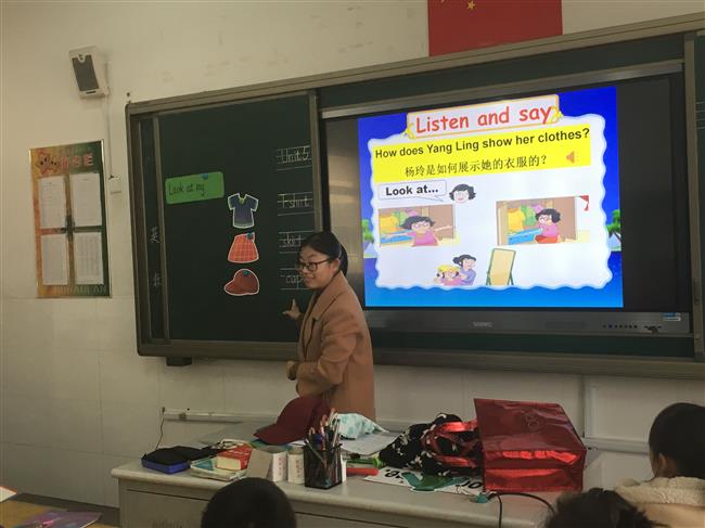 伊始,段老师以歌曲“Clothes”这首歌来活跃课堂气氛。之后,段老师通过Free talk亲切地跟学生互动。在呈现环节,段老师通过看和说,看和答,听和说等多种方式调动学生的积极性。在拓展环节,段老师通过让学生编写新chant来巩固运用本课重点单词和句型。