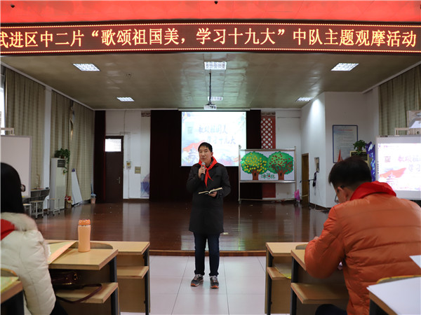 本次中队主题观摩活动共分四个篇章,根据中高年级学生的认知基础、实践能力和情感体验特点,放手让学生通过亲自实践,在丰富多彩的表现形式中,来进一步了解祖国,感受“十九大”精神,从而深切的赞美、歌颂祖国母亲,内心深处增强新时代责任感、使命感。