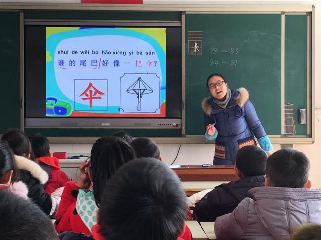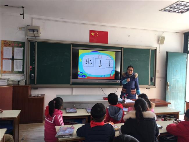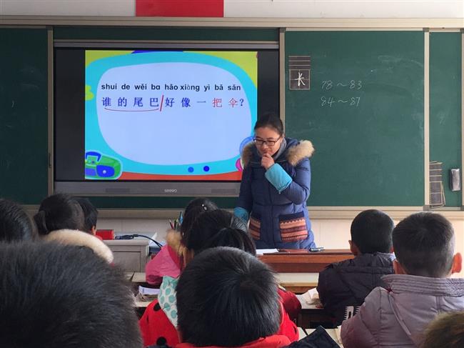 12月是19日,一年级组的语文老师们齐聚在一4班教室,聆听李小玲老师执教的《比尾巴》一课。