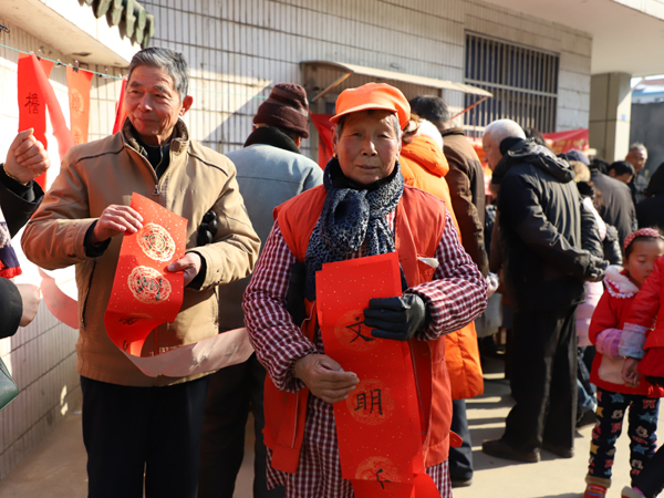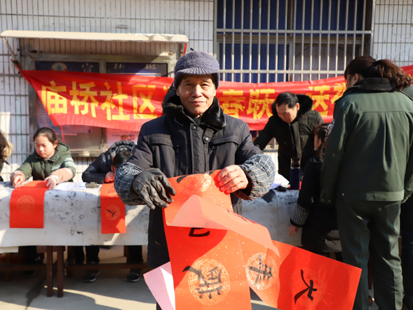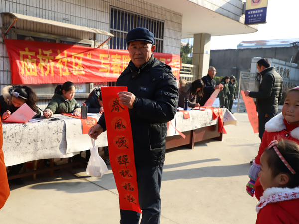 2月5日上午,庙桥小学组织书法社团的师生走上街头,与庙桥社区联合开展了“写春联 送温暖”活动,义务为社区居民现场书写春联,送上浓浓的新年祝福。