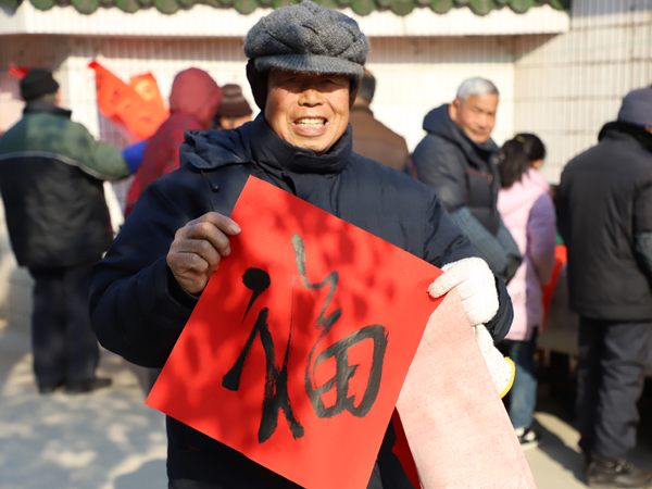 上午9时,参加活动的部分书法社团的孩子在老师的带领下来到了庙桥社区门外,摆开了架式。活动一亮相,立即引来不少过往群众的围观。尽管天气寒冷,但现场气氛热烈。“小书法家”们个个凝神聚气,泼墨挥毫。不一会儿,喜气洋洋的红纸上,一个个潇洒漂亮的毛笔字跃然而出,隶书、楷书、行书,无不展现出了学生们不凡的书法功底。“平安富贵财源广,如意吉祥家业兴”……火红的春联,讨喜的对句,年味儿就那么地飘然于纸上,洋溢在心头。在场的居民们一边观看,一边满口的啧啧赞叹,纷纷挑选着自己中意的春联。