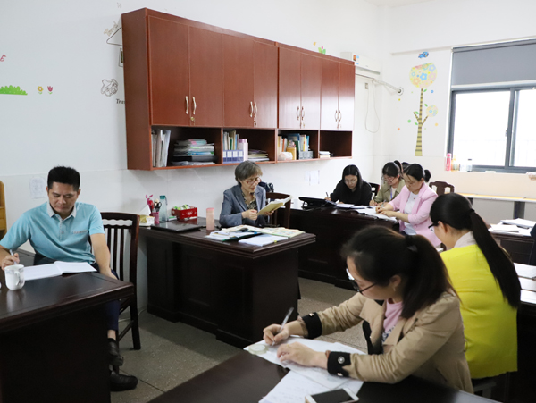上午,专家们按照既定的安排,分头开展调研活动。基教科朱红波副科长、教师发展中心小学部马伟中主任、裴红霞、刘丽华、李珊珊、王继伟等教研员以及海南省屯昌县教育局来武进跟岗学习的三位专家一起深入课堂,听了涵盖各年级不同学科的10节课。课后,参加听课的领导还同上课老师进行深入交流,同时检查指导各备课组教学方面的常规情况。发展中心电教部的赵亚需、杨勇两位专家则在韩小峰副校长和服务中心庄峰主任的陪同下,实地察看各功能室,重点就建设与应用,制度和规范等方面进行调研。课间,调研的领导们还饶有兴趣地观看了庙桥小学的特色项目篮球操与大课间活动。