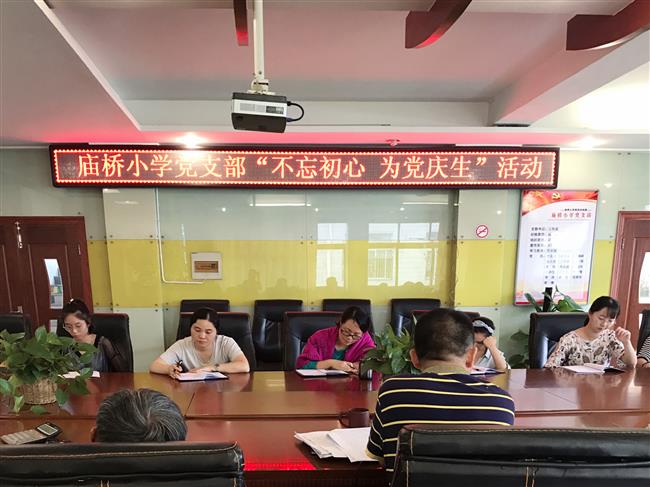 为认真贯彻落实党的十九大精神,进一步推进支部党建工作,在“七一”前夕6月26日下午,庙桥小学在支部活动室召开以“不忘初心、为党庆生”为主题的党员大会。支部全体党员参加了此次活动,会议由韩小峰同志主持。