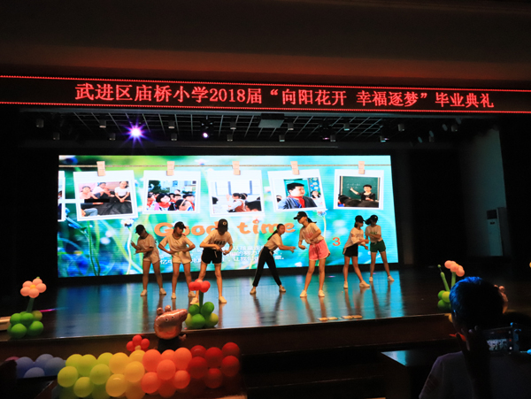连接这些环节的,是一个个精彩的表演。六1班的《阳光体育俱乐部》展示了毕业生对学校特色的喜爱和依恋。六2班的相声《好学生与坏学生》,充满着属于孩子的童真与风趣;经典咏流唱《苔》唱出了孩子们内心的不甘平庸。六3班的舞蹈《good time》,把毕业生带入了一段段难忘的小学生活。六4班的朗诵《炎黄赋》,充盈着古典文学的典雅;歌曲《有点甜》让孩子们尽享生涩、甜蜜的感觉。六5班的舞蹈《大笑江湖》,尽显青春的活力与幻想;歌曲《大梦想家》仿佛为大家披上了梦想的翅膀飞向更遥远的未来。最后六1班的诗朗诵《再见了,亲爱的母校》和六3班的歌曲《不说再见》,又道出了学生对母校、老师、同学的依依不舍之情,把活动推向了又一个高潮。同学们的精彩表演,尽展六年的所学,这一刻所爆发出的能量,是庙小精神的完美展现,也赢得了台下阵阵掌声。