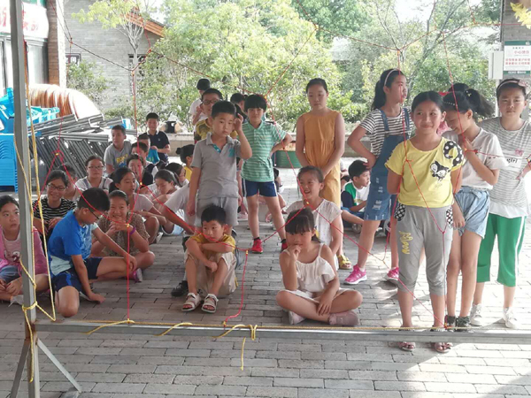 7月23日上午,小志愿者们拖着行李箱井然有序地入住了一方小铺,地儿不大,但干净整洁。孩子们穿越梦幻般的长廊,尝到了素有“天下第一锅”之称的石锅饭,体验了一回平时难得一见的野炊。饭后的开营仪式上,孩子们齐唱国歌、庄严宣誓、学习纪律。下午,户内活动模式开启:穿电网、摇大绳等活动培养出了彼此的默契度与信任感。迎着娇羞的晚霞,草坪上升起了一团篝火,各路“偶像练习生”借此良机进行歌舞比拼,好不热闹!中途突然下起的雨让孩子们有条不紊地穿上了颜色鲜艳的雨衣,顿时,草坪上变得有“声”有“色”。