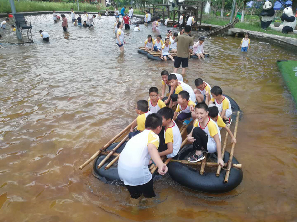 第二天上午,雷阵雨没有如约而至,天气凉爽。所以孩子们的晨练、寻宝等户外活动如火如荼。如果说晨练是修身养性,是体力与耐力的较量,那么在方圆百里陌生之地,仅凭一张地图寻宝便是智慧的比拼,是对团队合作能力的考验。事实证明,庙小学子是脑力与体力并重的“实力派”。夏日最不能辜负的就是水了,水到之处更有活力,做竹水枪、跨独木桥、开竹筏船、与鱼儿逗趣、与伙伴斗水……一下午就这么倏忽飞过去了。晚上的观影时间,即使没有奢华的影院设施,大家济济一堂,认真观看意义深刻的影片,别有一番滋味。