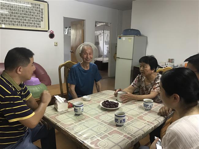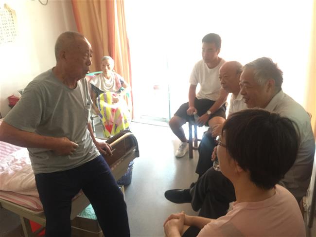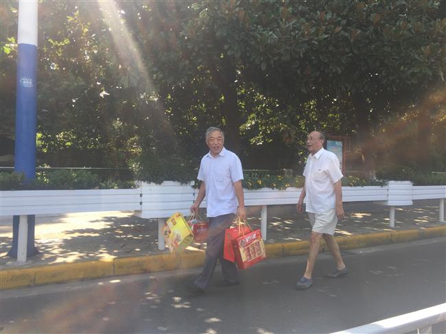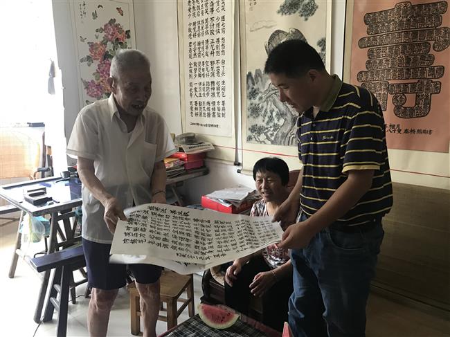 每每离开退休教师们的家,访问团的成员们总是带着浓浓的不舍,而被访问的老教师们更是一送再送。吴兴大老师已82岁高龄,不顾门外39度的高温,怀着感激之情将访问团送出三百米之外,并一一送上车,挥手告别,目送汽车离去。那烈日下不愿离去的身影,让每一位访问老师动容。92岁的徐鹏翔老师酷爱书法和音乐,在接待慰问团成员过程中,徐老师以二胡伴奏,和保姆合唱一曲《南泥湾》,愉悦同事身心,更赞美了祖国的伟大建设。临行之前,他赠上亲手所书的《百福百寿图》,叮嘱后辈们心怀孝道,懂得而感恩,以最美好的心灵去感化和教育孩子们。诸如此类的动人场景,不断在走访过程中出现,令观者动容,令访者震撼。