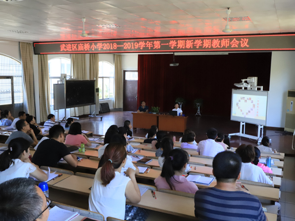 新学期在全新的气息中款款走来!8月30日上午,庙桥小学以“践行‘进步’文化,提升学校品质”为主题召开了2017—2018学年第一学期全体教职工会议,会议由薛小英副校长主持。