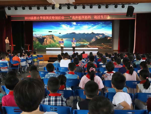 以重大节日、纪念日为契机,集中开展好少年儿童的思想道德教育活动,已成为学校德育教育的重要抓手。9月30日,庙桥小学组织开展了这样一次迎国庆特别活动——“我和祖国妈妈一起过生日”。