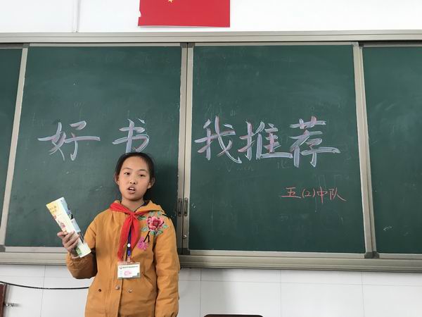活动分为前期推荐好书的征集工作和后期推荐好书的展出工作。活动中,各班在语文老师的组织下,学生们纷纷走上讲台,把自己读过的最喜欢的好书推荐绐其他同学。他们先是认真地介绍作者和内容。然后满怀激情地谈出了自己读后的收获和体会。有推荐中外名著的,有推荐历史书籍的,也有推荐童话和亲情系列图书等。活动后,好多“小书迷”被同学们介绍的书深深地吸引住了,争着抢着前去借阅。