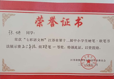 2018年12月23日,“七彩语文杯”江苏省第十二届中小学软笔硬笔书法展示赛省级现场比赛暨颁奖典礼在南京市金陵中学河西分校举行。