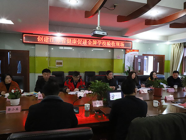 2018年12月25日上午,由省学生体质健康监测与干预行动研究中心苏立新教授、南师大王佳丽老师、苏州疾控潘耀东主任、东南大学蔡瑞雪老师组成的江苏省健康促进学校省级验收专家组一行4人,对庙桥小学创建江苏省健康促进金牌学校进行了验收。常州市疾控中心鲍东平副主任、市健康教育所赵晓军副所长、常州市教育局体艺卫处华汉林副处长、武进区教育工委何良委员、区教育局谭文杰副科长、徐银老师全程陪同。