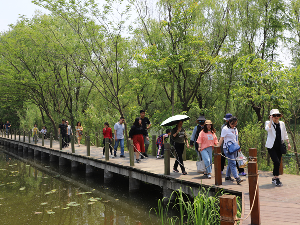 活动的第一站,便是著名的生态保护区——溱湖国家湿地公园。该景区总面积26平方公里,自然资源优越,生物类型多样,生活着丹顶鹤、麋鹿等珍稀物种。值此春夏之交,树木丛生,百草丰茂,整个景区宛如沉浸在生命的洪流之中,处处充溢着鸟兽之声、松竹之韵。老师们泛舟十里溱湖,参观湿地科普馆,在学习自然科学知识的同时,感受着天地生灵的奇妙和尊严,无不产生憧憬与敬畏之心。他们纷纷表示,当前的学校教学之中所普遍运用的文字书籍和多媒体技术,无论多么形象逼真,也无法完全模拟这包罗万象、生生不息的大自然。加强对学生的生命教育、科学教育,引导学生亲身体验自然之美,是促进学生成长的必然途径。