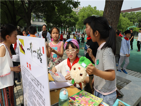 下午,在全校师生的努力下,校园布置成了儿童们义卖的天堂!咦,这些都是哪个国家啊?原来,今年特意布置成“一带一路”的现场。看,那亲手绘制的国旗,那身着异国服装的同学,听,那充满异国曲调的音乐,用外语表达的吆喝声,真是太新奇了,同学们的眼睛都看花啦!转了一圈下来,有的队员手中的积分卡所剩无几,抱着自己看中的物品,也有的队员太过羞涩,还没有成功交易呢!你看,那儿怎么排了那么长的队伍?哦,原来是我校的新教师石老师现场给同学们画星座图呢,女同学们尤其喜欢。这一场义卖活动,将学生们的天性释放,沉浸在欢乐的海洋,迟迟不肯离去!