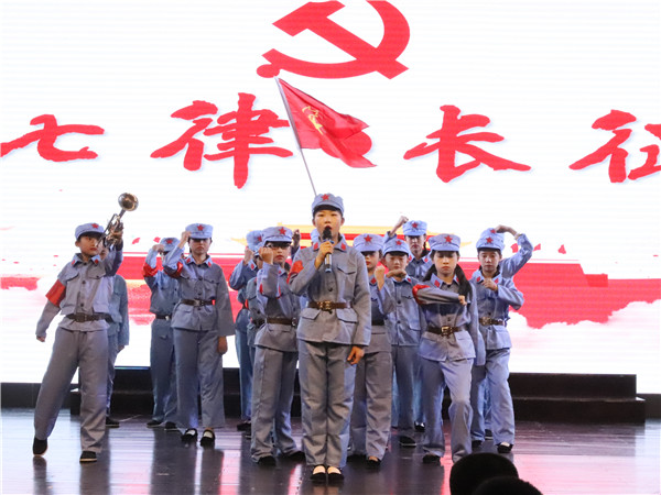 首先,兰秀成校长对此次活动发言祝贺,他言语真挚,情谊真切,特别表扬了三(5)班张子成同学拾金不昧的优秀事迹,并现场颁发锦旗,在座的家长和同学们都对他的行为表示肯定,掌声不断;接下来二年级合唱《没有共产党就没有新中国》,唱响了第一篇章“历经风雨念党恩”的序曲;五年级同学身着红军服装,带来了诗朗诵《七律长征》,在座的观众们仿佛看到了那战火纷飞的苦难时代,苦难中又带着希望与坚强;校艺术团的器乐演奏《更替的四季》曲调清新,让人觉得轻松愉悦,同学们都用好奇的目光看着舞台上的演员,心想,他们怎么演奏得这么好听呢?然而二年级的舞蹈《拉丁舞》并没有给大家时间思考之前的问题,以轻快的节奏将大家带入了第二篇章“奋发努力少年强”;紧接着四年级《燃烧我的卡路里》将观众们吸引了,同学们都跟着曲调唱了起来,真是开心啊;五年级准备的另一个节目《说长征》,用快板的形式向大家讲述了红军长征的故事,真是一边看节目一边学知识,两不误啊;《吧吧吧》想必你没有看过,三年级的同学跳得真带劲啊,现场的气氛又热闹起来了;《跆拳小子》是校跆拳道社团的必演节目,校跆拳道的学生们动作节奏感强烈,给大家体验到了跆拳小子的力量与速度,许多小朋友已经在打算加入队伍训练了呢。此外,我们还有心表彰了学校“优秀家长”以及 “优秀少先队员”,表彰活动和文艺节目展示穿插进行。虽然表演已结束,但现场的声、影、形已刻在现场观看人员的脑中,成为他们最美好的回忆!