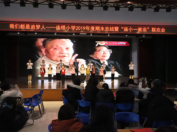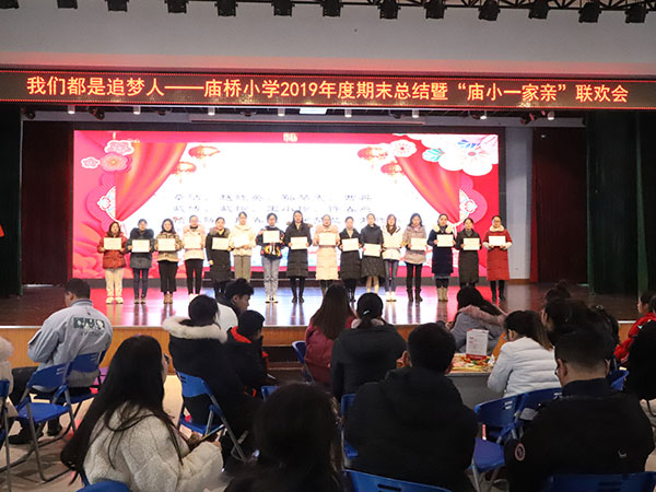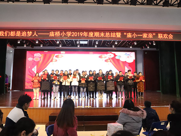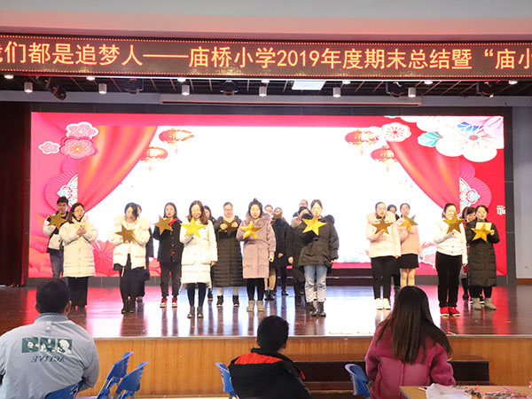 2020年1月17日,恰逢新春佳节临近与期末工作结束,庙桥小学全体教师在学校工会、党支部、校行政的组织下,开展“我们都是追梦人”迎新春文艺汇演暨2019年度总结表彰大会。