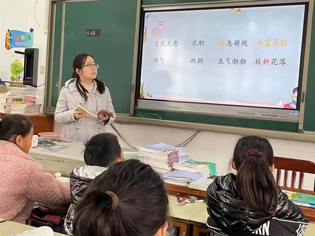 3月9日下午,三、四年级语文老师齐聚四(2)班,聆听了杨洁老师执教的课文《猫》的第一课时。