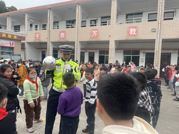 为进一步提高校园师生的交通安全意识,提升广大师生的自我保护能力,从源头上有效预防和减少学生道路交通事故。2月28日下午,高新区交警中队宣传民警深入庙桥小学华阳办学点,开展“尊法守规明礼 安全文明出行”交通安全宣传活动。