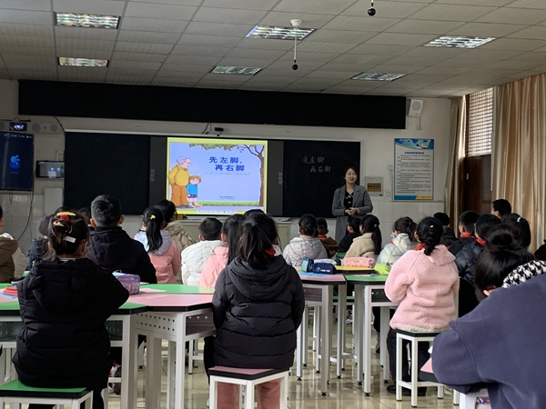 春风送暖,阳光明媚,正是读书的好时节。2月28日下午,顾卓筠老师在多媒体教室开展了绘本阅读示范课《先左脚,再右脚》。全校语文教师参与听课,并结合实际工作针对如何提升学生阅读兴趣进行探讨。
