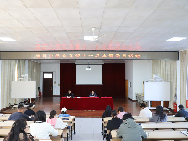 为加强基层党支部建设,锤炼党性修养,提升支部党员的凝聚力,11月13日下午,庙桥小学党支部在阶梯教室举行了十一月主题党日活动,会议由韩小峰副书记主持,全体党员参加了活动。