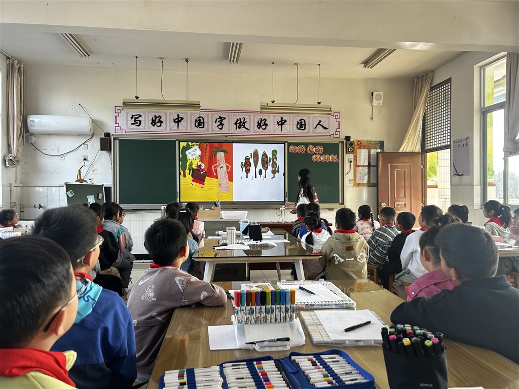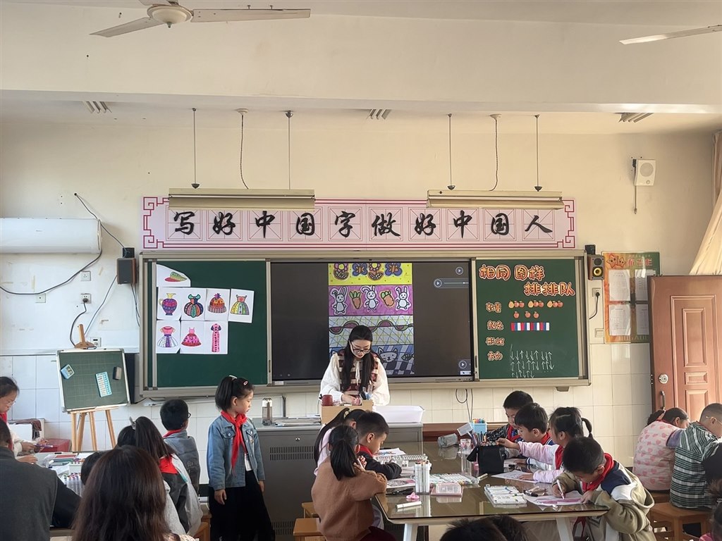 2024年10月30日上午第二节课,综合组老师齐聚美术教室1,观摩陈筱老师执教的二年级美术《相同图样排排队》一课。